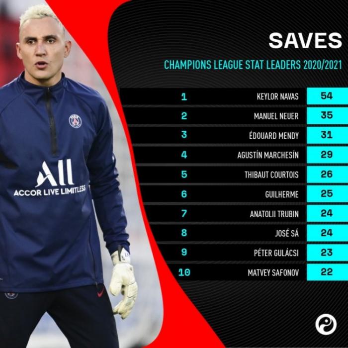 扑救榜:巴黎队内的纳瓦斯贡献了54次扑救,位居榜首,而第二的诺伊尔才35次,第三的门迪31次,从数据可以看出,纳瓦斯还是以前的“那堵墙”,他依然是足坛最好的门将之一,而本赛季巴黎可以晋级四强,纳瓦斯功不可没,不然对阵巴萨,对阵拜仁巴黎早就被打穿了,不知道皇马为啥那么不喜欢他。