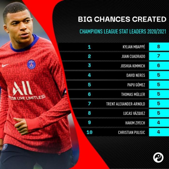 从数据可以看出,哪些球员的表现最好,个人感觉,本届欧冠比赛,姆巴佩的表现是最好的,而且巴黎和曼城队内不少人都表现不错,不过可惜的是,最终的冠军还是切尔西,这说明了什么?足球,还是要依靠整体才行。